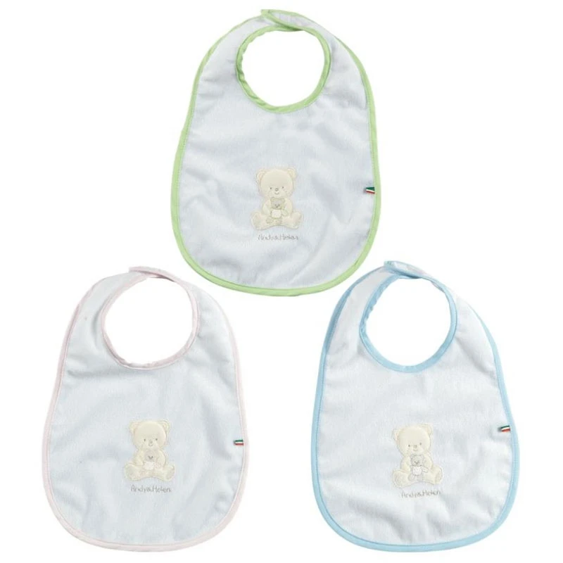 Andy&Helen Bavaglio Impermeabile in Spugna di Cotone – Taglia Media è un morbido bavaglio pappa realizzato in spugna di cotone con rivestimento impermeabile. Decorato con un dolce orsetto ricamato. Misura: 20 x 25 cm, taglia media. Colori disponibili: Verde, Rosa, Cielo.