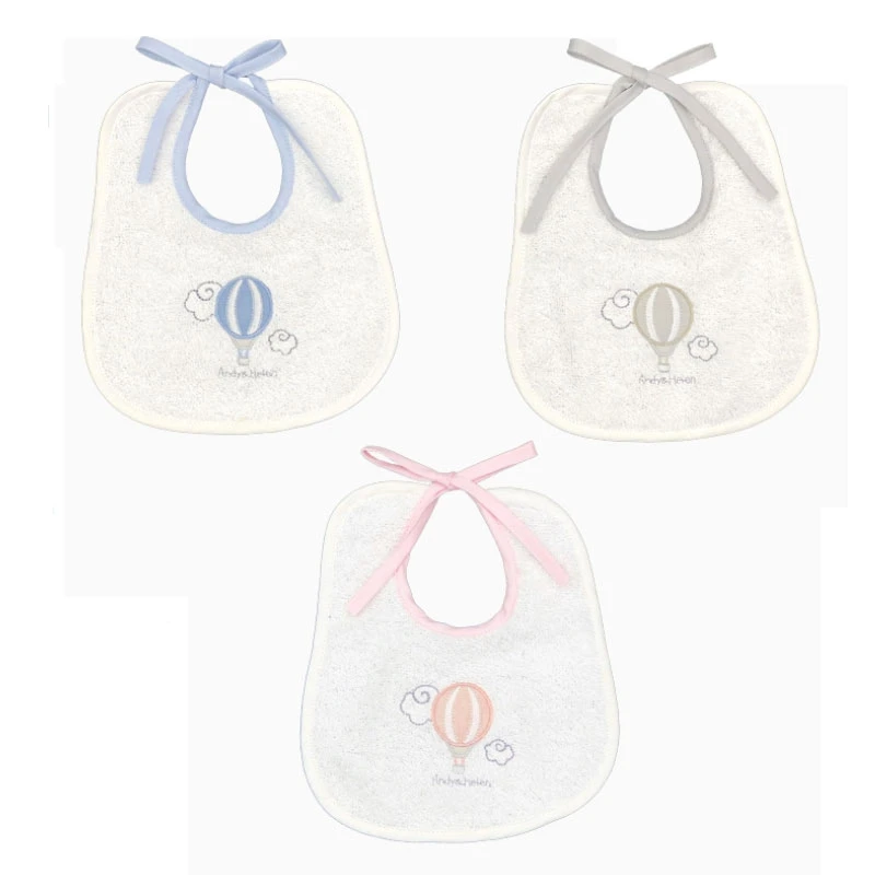 Andy&Helen Bavaglio in Cotone Ricamo con Mongolfiera, Taglia Piccola è un comodo bavaglino per il momento della pappa, ricamato con una mongolfiera e disponibile nei colori Grigio, Rosa, Cielo. Realizzato in morbida spugna di cotone.