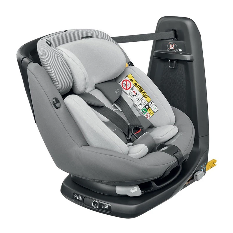 Bebeconfort Seggiolino Auto AxissFix i-Size è fornito di seduta girevole a 360°C e assicura un elevato livello di sicurezza grazie all’installazione con connettori Isofix in acciaio e l’efficiente Top Tether con sistema ASB, ossia un tensionamento automatico che assicura una stabile connessione tra lo schienale e la base. AxissFix può essere orientato in entrambi i sensi di marcia: in senso contrario alla marcia fino a 2 anni circa (87 cm), e in senso di marcia a partire dai 15 mesi e per tutto il periodo di utilizzo del seggiolino. É provvisto di protezioni laterali incorporate di schiuma impact absorbing (che assorbe l’energia in caso d’urto proteggendo la testa del bambino), scocca in polipropilene, sistema di ritenuta a 5 punti, schienale e poggiatesta reclinabile/regolabile in più posizioni e in entrambi le direzioni di marcia.