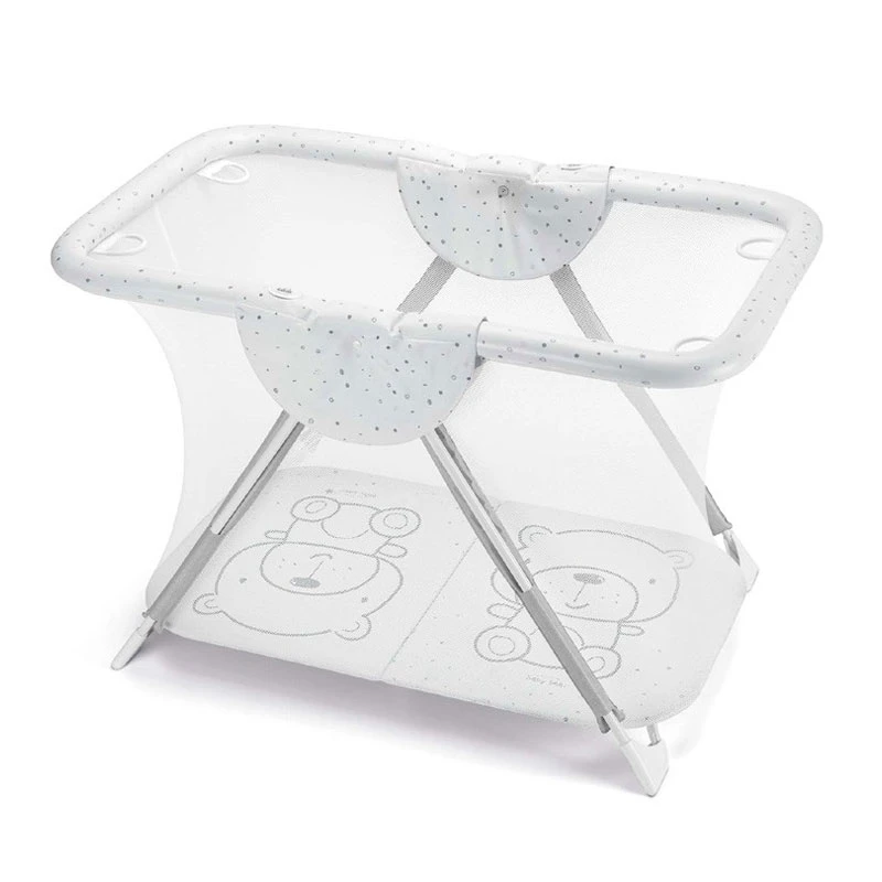 Cam Box Brevettato – Teddy G è progettato per accogliere i bambini con peso inferiore ai 15 kg. É dotato di 4 maniglie di sostegno per permettere al bambino di sollevarsi e stare in piedi da solo, rete di protezione che impedisce al bambino di rimanere con le dita impigliate e di corrimano imbottito anti-morso. Quando chiuso, rimane compatto e facile da trasportare ovunque. É realizzato con materiali atossici e privi di ftalati. Supera brillantemente il test del morso, test di stabilità, test anti-intrappolamento e il test impatto dinamico.