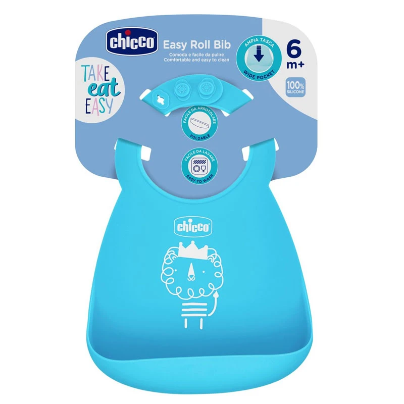 Chicco Bavaglio in Silicone Regolabile e Pieghevole 6m+ è dotato di tasca raccogli-briciole che raccoglie lo sporco mantenendo i vestiti puliti! Il Bavaglio Chicco è impermeabile, facile da pulire ed è anche arrotolabile e pieghevole. Realizzato in silicone facile da lavare. Per bambini dai 6 mesi in sù. Colori: Rosa e Azzurro.