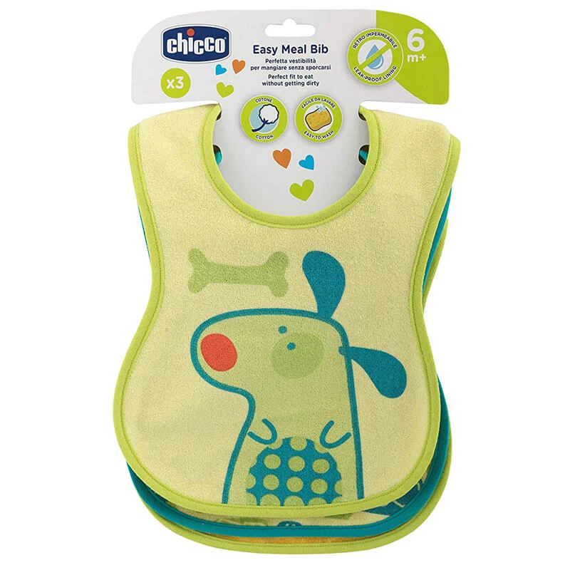 - Contenuto: 3 Bavaglini Assortiti disponibili nella variante di colore Azzurro e Verde
