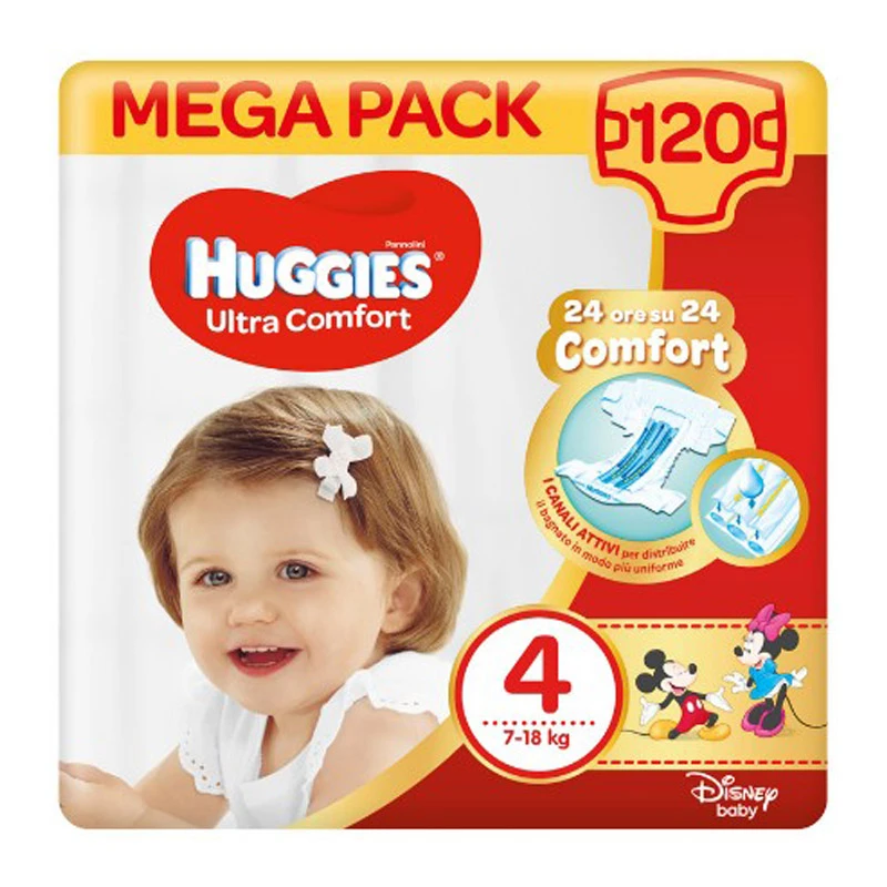 Huggies Pannolini Ultra Comfort Mega Pack 4 – 120 pezzi. Comfort 24 ore su 24 per i bambini con Huggies Ultra Comfort. I canali attivi distribuiscono il bagnato il modo uniforme. I bambini sono liberi di muoversi senza effetto mucchio. Inoltre la banda elastica e la forma anatomica aiutano a mantenere una ottima vestibilità.