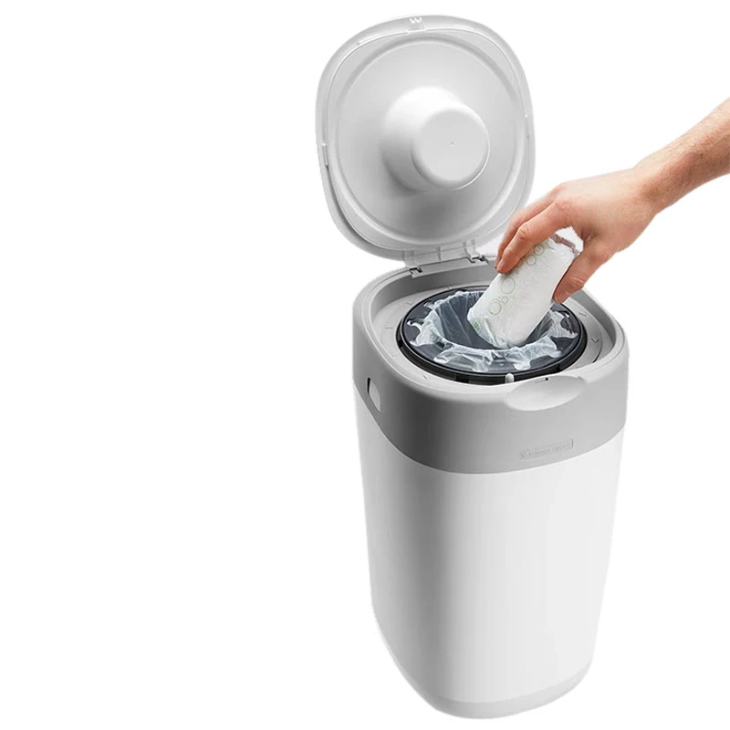 Il Mangiapannolini Twist&Click + 4 Ricariche di Tommee Tippee avvolge singolarmente ogni pannolino e sigilla cattivi odori e batteri! Questo contenitore può contenere fino a 30 pannolini, in generale i neonati possono cambiare il pannolino fino a 12 volte al giorno: con Twist&Click il genitore non dovrà più uscire tanto frequentemente per buttare la spazzatura, mantenendo comunque la casa linda e senza sgradevoli odori in giro! Il nuovo coperchio piatto si apre contro ogni tipo di parete, consentendoti di posizionarlo e usarlo ovunque. Il Mangiapannolini di Tommee Tippeee assicura che ogni pannolino sia avvolto singolarmente nella giusta quantità di pellicola antibatterica, avvisando con un clic quando il pannolino è stato avvolto completamente, riducendo così la quantità di rifiuti e di sprechi.